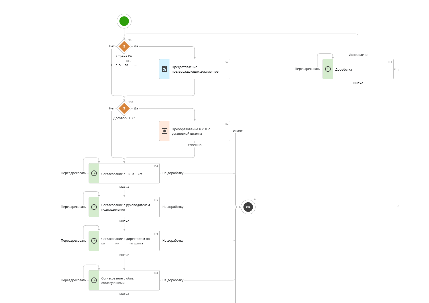 На примере можем наблюдать, как сильно изменилась схема до момента с согласованием с обязательными согласующими: