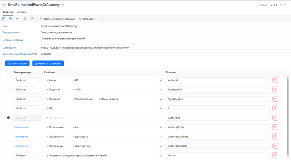 Рассмотрим процесс настройки на выдуманном примере. Допустим, нам необходимо выгружать документы типа «Электронная доверенность» в Учетную систему N. Требуется передать следующий набор данных: