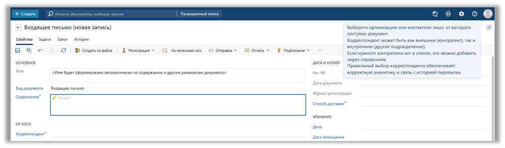 В отличие от штатных возможностей системы, где всплывающие подсказки можно задать только на действиях карточек объектов, данное решение позволяет бизнес-аналитикам и администраторам динамически настраивать контекстные подсказки без участия разработчиков. Подсказки отображаются при наведении курсора на название полей, поясняя их назначение, правила заполнения или бизнес-логику.