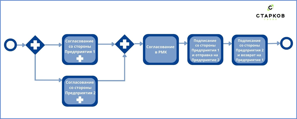 Далее начинается параллельное согласование по единому маршруту с участием ответственных служб обоих предприятий:
