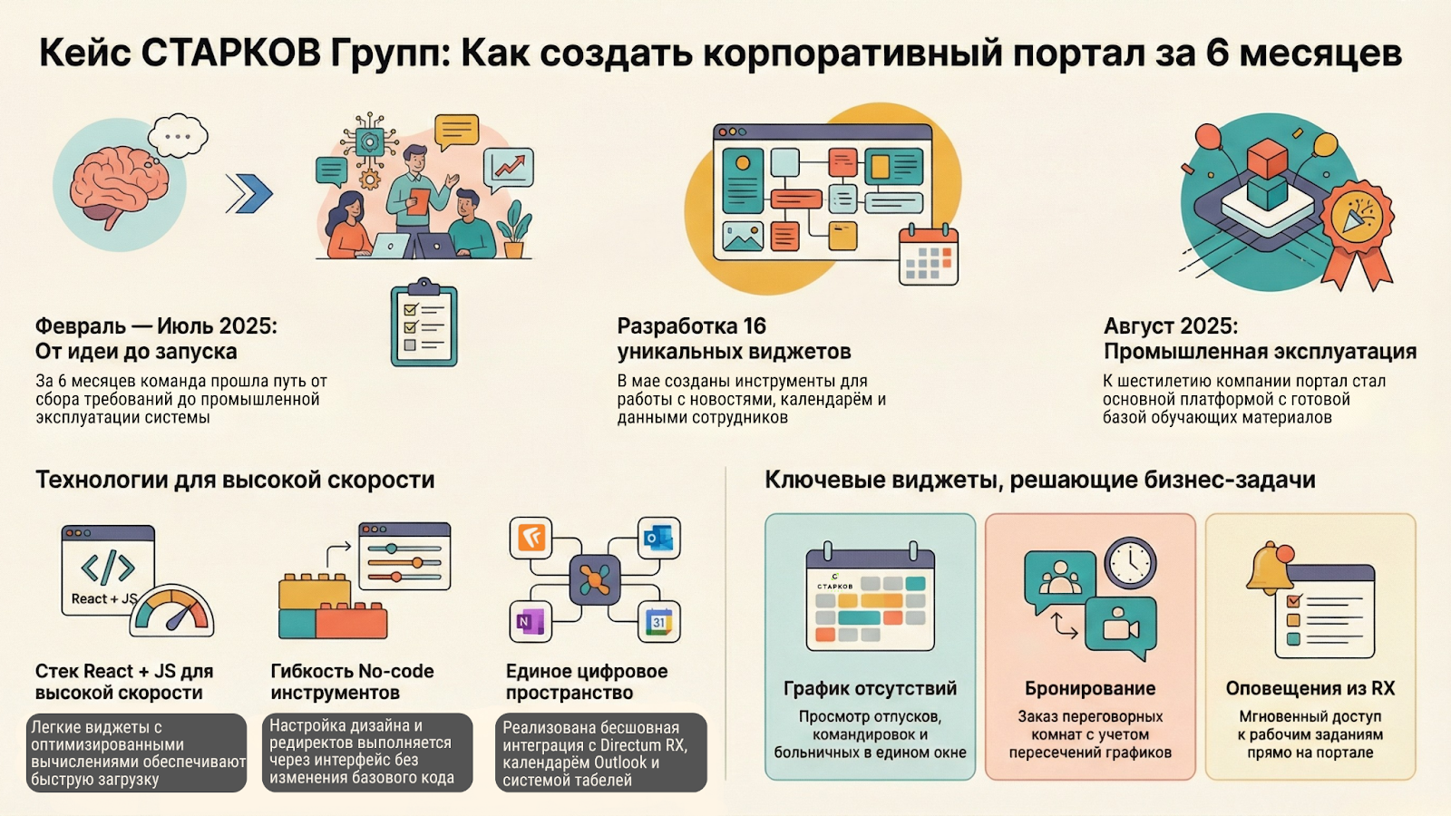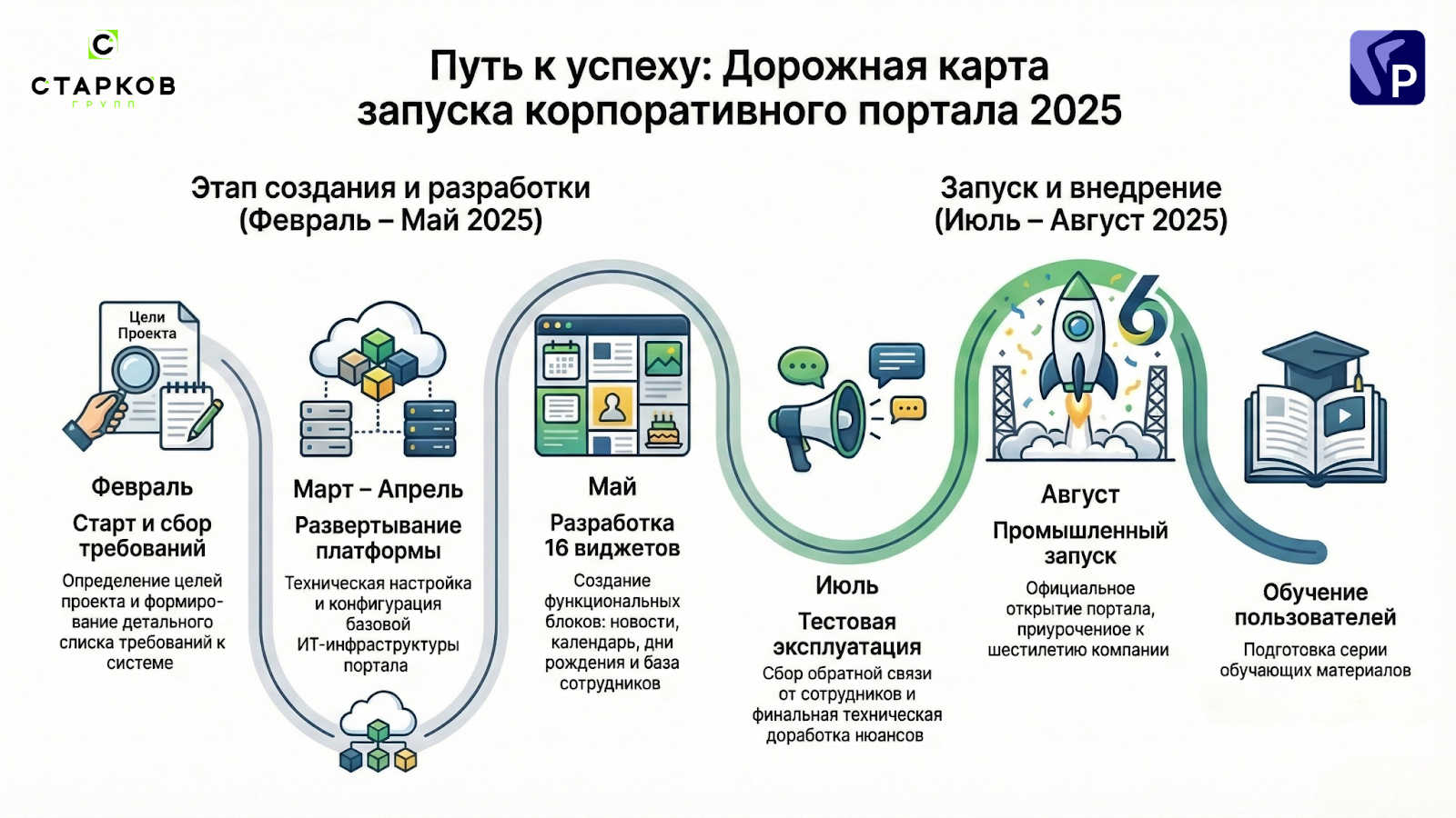 Проект стартовал в феврале 2025 года. В июле 2025 мы запустили Портал в промышленную эксплуатацию. 6 месяцев - от идеи до работающей системы, которой пользуется вся компания.