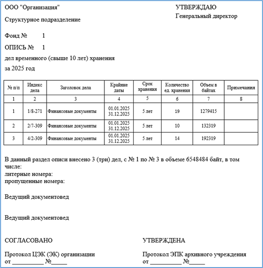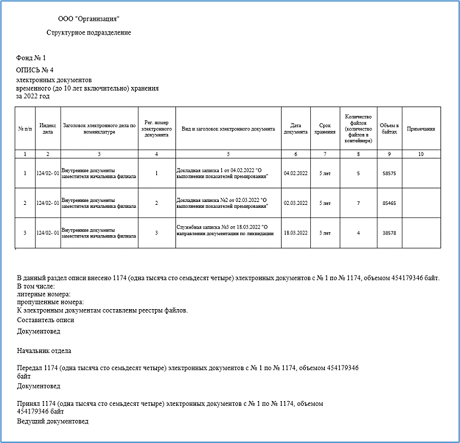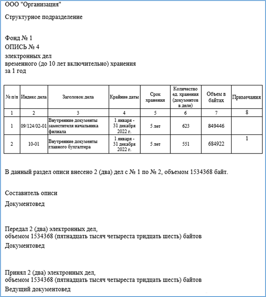 Рис. 1 Сдаточная опись электронных дел