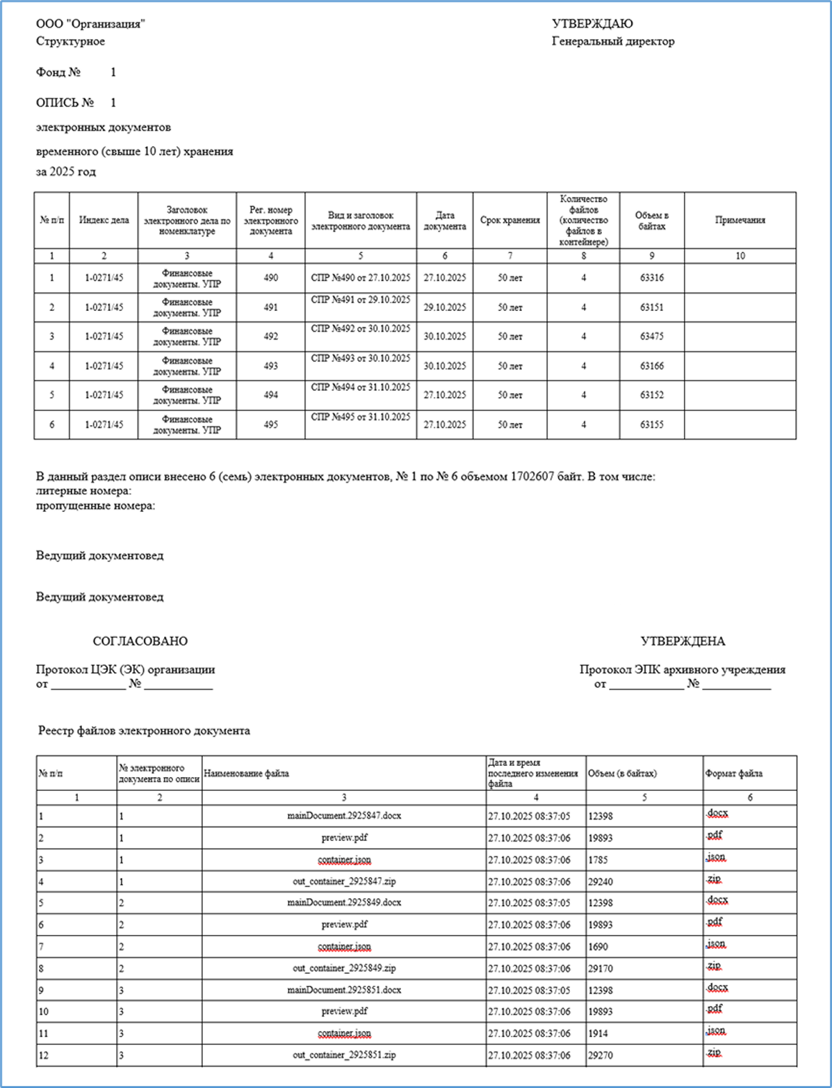 Рис 2. Сдаточная опись электронных документов