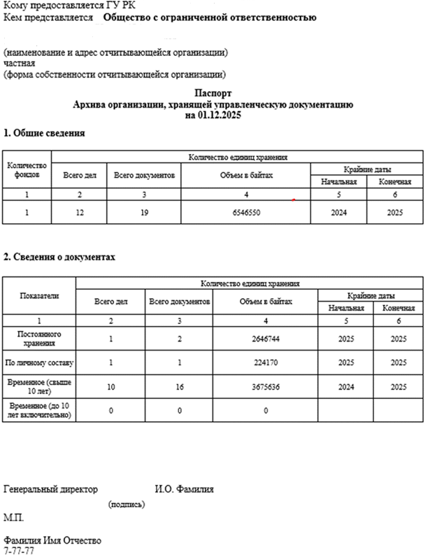По запросу от контролирующей организации архивист формирует выгрузку по критериям: