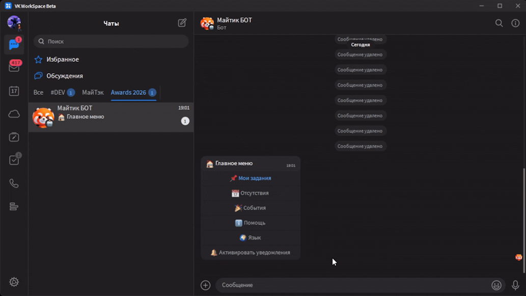 Учитывая ограничительную политику по блокировке мессенджеров, использование корпоративного мессенджера с удобным ботом для уведомлений и прочего функционала является особенно актуальным.