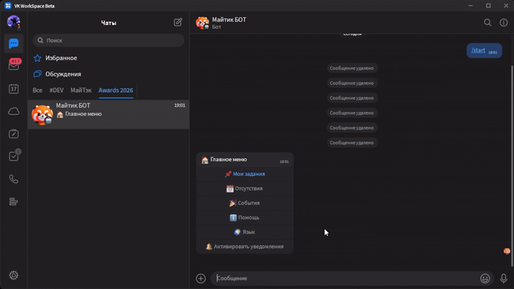 Такой подход позволил органично встроить оповещения о задачах в уже существующие коммуникационные привычки сотрудников, сделав взаимодействие с системой более бесшовным и удобным, без необходимости осваивать дополнительные каналы связи.