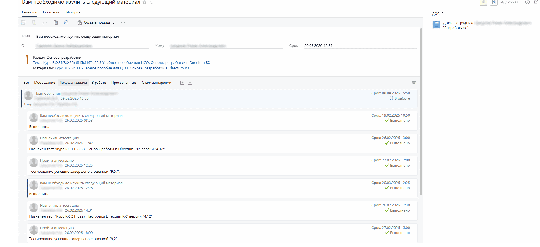 Рисунок 4. Задача ведет сотрудника по плану обучения, автоматически подключая наставников, где это нужно.