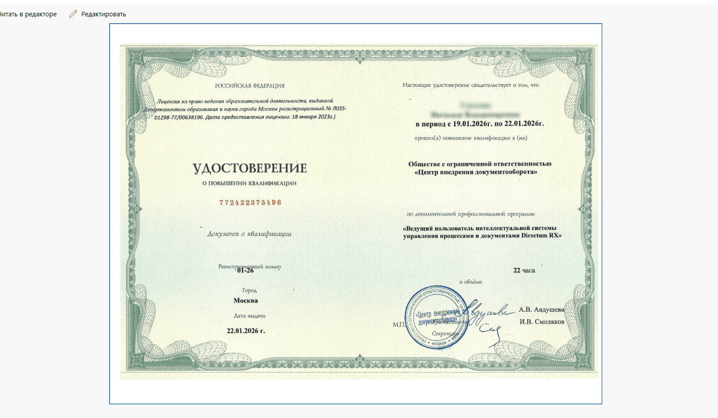 С 2023 года ЦВД имеет лицензию на образовательную деятельность, что позволяет не только автоматизировать документооборот клиентов, но и профессионально развивать их сотрудников с выдачей удостоверений государственного образца.