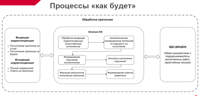 Стандартная функциональность Directum RX не обеспечивала сквозную автоматизацию работы с претензиями — от распознавания входящих документов до подготовки и отправки ответа заявителю.