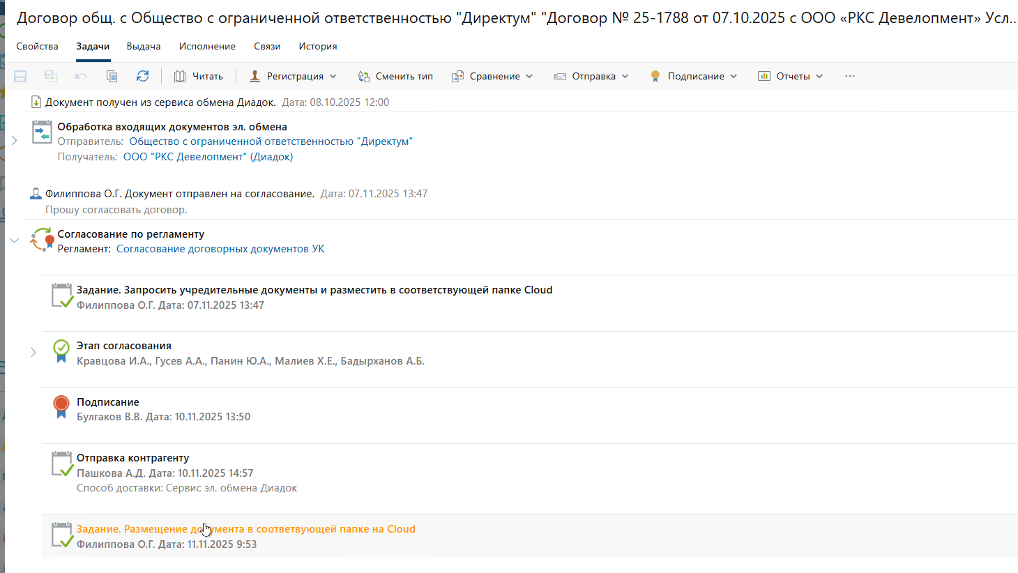 1. Отображение полного маршрута согласования/подписания документа в Директуме: