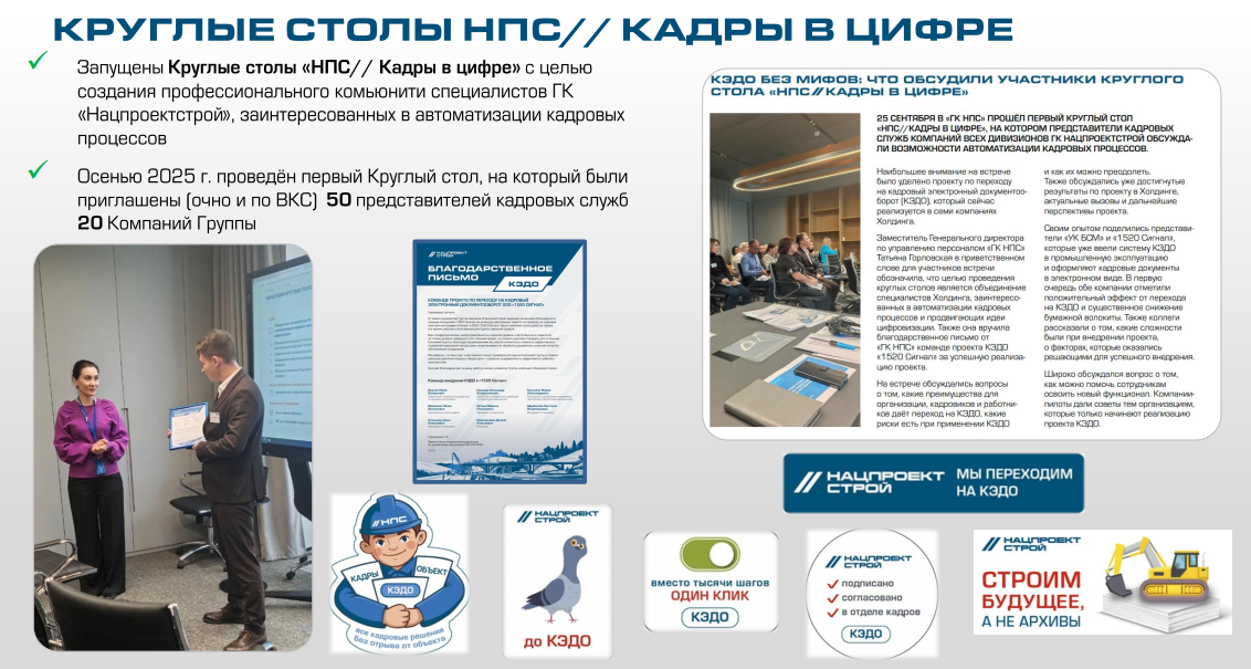 - Проектирование и создание шаблона: Разработка единой методологии КЭДО для всего Холдинга. Формирование «Шаблона КЭДО ГК НПС», включая типовое Проектное решение.