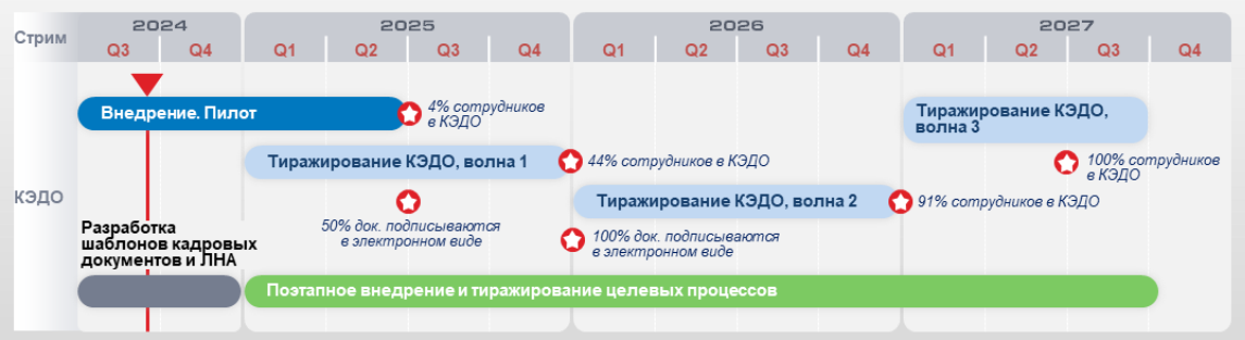 - Расширение периметра: подключение к КЭДО всего производственного персонала, включая вахтовиков.