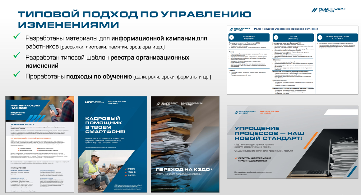 И нельзя пренебрегать информационной кампанией, потому что ее цель – повышение привлекательности КЭДО в глазах сотрудников, разъяснение основных понятий, проработка страхов и возражений, что в перспективе ускоряет переход сотрудников на систему КЭДО, снижая их страхи и скептическое отношение.