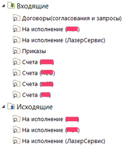 В «ЛазерСервисе» деятельность ведется группой компаний (мультиНОРность, при которой каждая организация (НОР) – отдельное юридическое лицо). Пользователи системы, включая высшее руководство, являются совместителями должностей в разных компаниях, входящих в группу. Для разделения потоков заданий в DIRECTUM 5 были настроены папки потока для каждой организации. Важно было сохранить текущую логику работы с папками потока в DIRECTUM 5 и на Directum RX, но на тот момент штатные средства Directum RX не позволили выполнить настройки аналогичным образом.