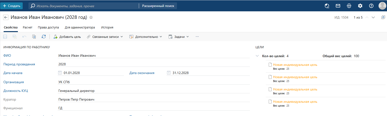 Максимально упрощена работа с целями подчиненных. Все делается из интерфейса Directum RX за несколько секунд. |