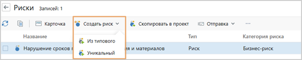 Уникальные риски. В новой версии решения помимо типовых появилась возможность добавлять уникальные риски для проекта. Они позволяют учитывать специфику отрасли или внутренних процессов каждого проекта: