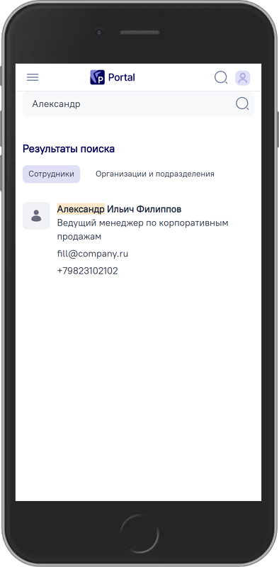 Теперь искать информацию о сотрудниках и подразделениях удобно на ходу с помощью смартфона. В новой версии страница с поиском по организационной структуре адаптируется под экран мобильного устройства: