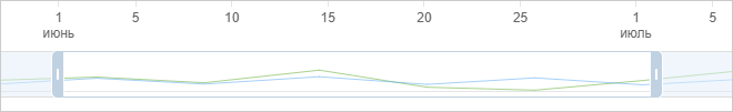 Отображением графика легко управлять. С помощью колеса мыши можно быстро изменять масштаб. Например, для оценки общей картины по достижению метрики. Чтобы отобразить график за нужный период, достаточно потянуть за края области навигатора:
