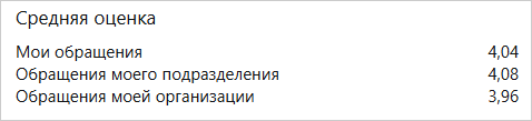 Оценка и комментарий отображаются в карточке обращения. Сотрудники службы поддержки могут посмотреть среднюю оценку по решенным обращениям с помощью наглядного виджета:
