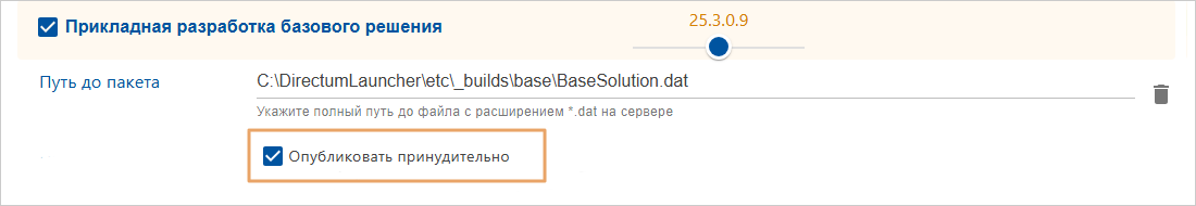 Принудительная публикация прикладной разработки через Directum Launcher. Как правило, она нужна в экстренных случаях, например при устранении критических ошибок. Теперь опубликовать пакет можно как в ручном режиме с тонкими настройками через командную строку, так и с помощью нового флажка через Directum Launcher:
