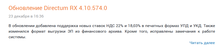 Также изменения планируется выпустить в обновлениях версий 25.1, 4.12 и 4.10, об их выходе дополнительно сообщим на сайте поддержки Directum.