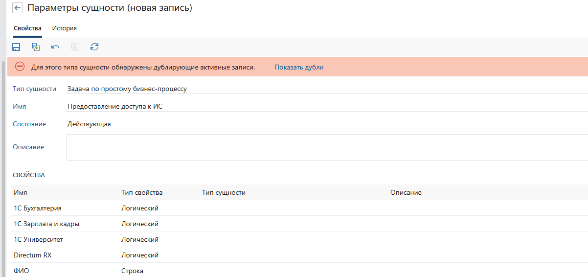 Параметры сущности для типа Служебная записка