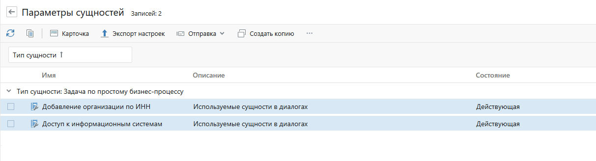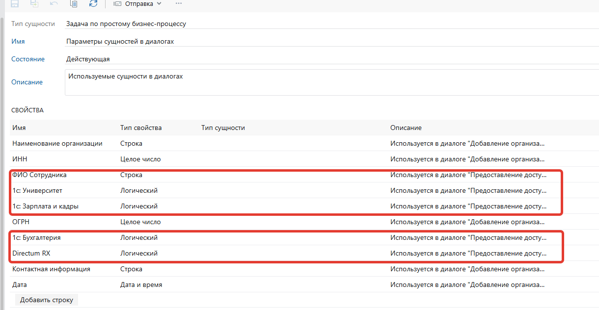 В предыдущем примере были созданы параметры сущностей для простого бизнес-процесса. Попробуем сделать то же самое для нового диалога еще раз для данного типа, чтобы выглядело как на картинке ( сгенерировано) красиво и понятно.