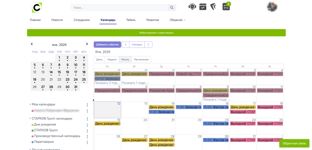 Рис. Страница Календарь
