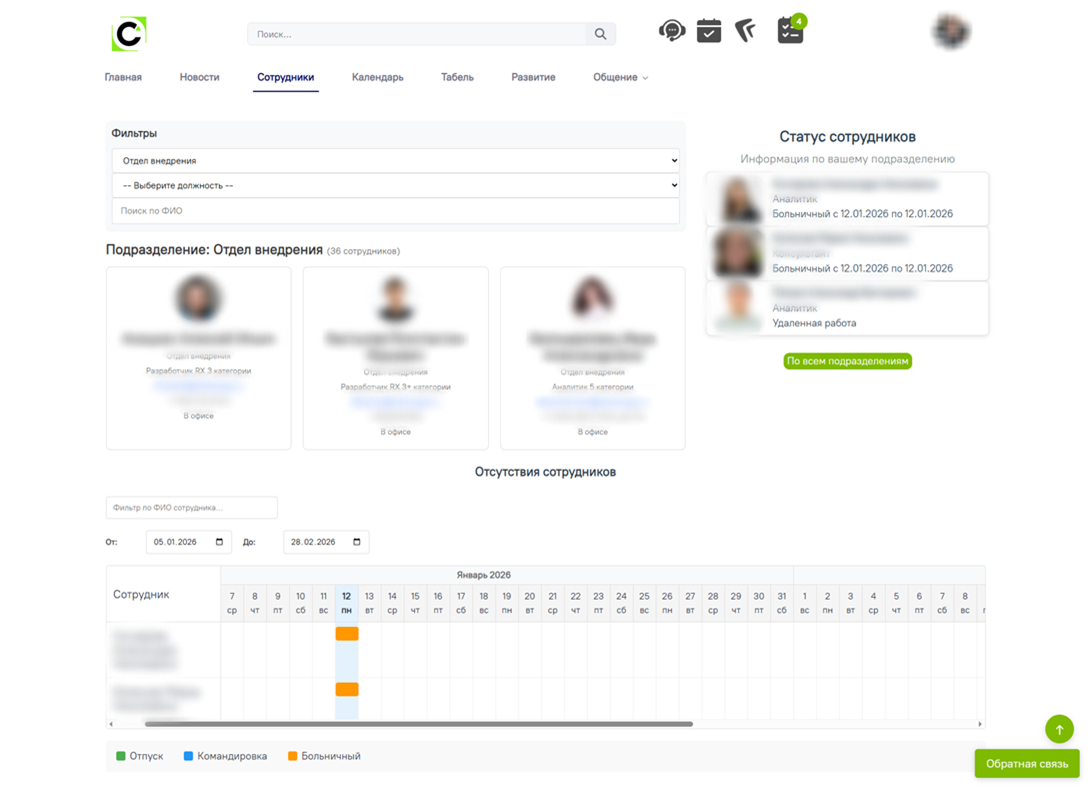 Рис. Страница Сотрудники
