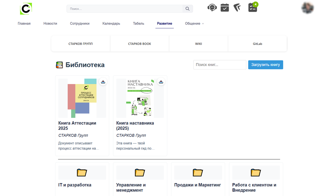 Рис. Страница Развитие