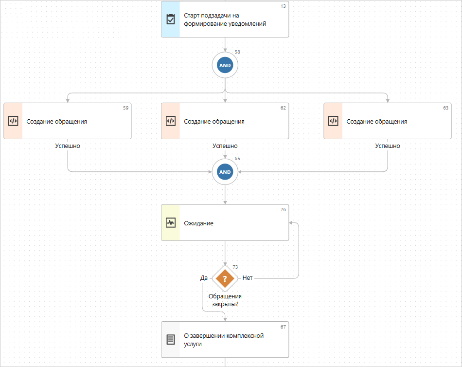 В новой версии решения появилась возможность отправлять обращения в рамках любых процессов с помощью no‑code. Например, можно настроить автоматическое создание дочернего обращения в ходе работ по другому обращению. Для этого в модуле «Корпоративные услуги» добавлен блок «Создание обращения»: