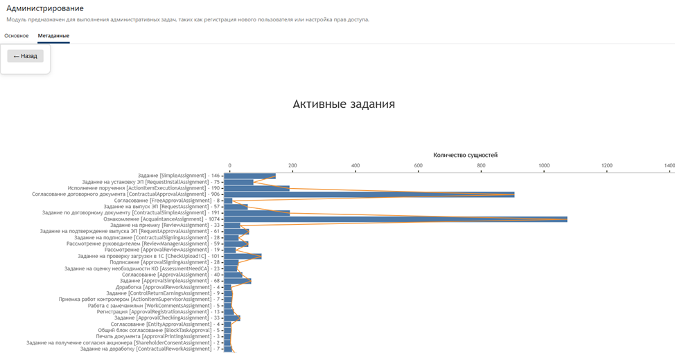Рисунок: Компонент с распределением активных заданий в системе по типам.