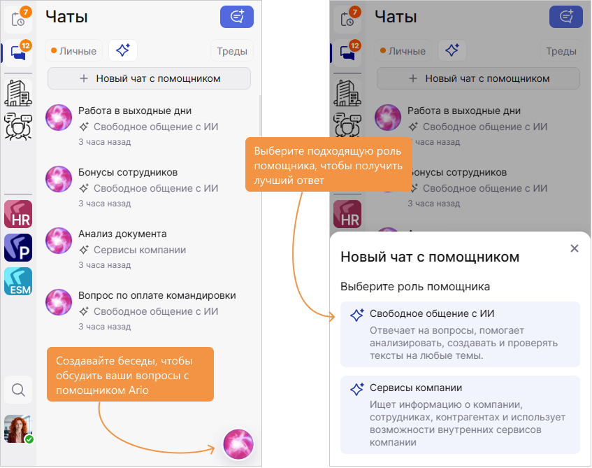 Теперь общаться с интеллектуальным помощником Ario можно в нескольких беседах. Он сохраняет контекст в каждой из них, и к обсуждению можно вернуться даже спустя долгое время. Чату автоматически дается название в зависимости от обсуждаемого вопроса – при необходимости название можно изменить. Для удобной навигации список бесед собран на специальной вкладке со значком