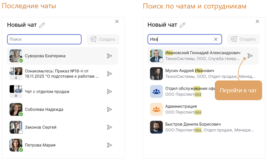 В новой версии состав участников в чатах автоматически обновляется на основе организационной структуры компании. Благодаря этому при приеме или переводе сотрудника не нужно вручную добавлять или удалять его из корпоративных чатов.